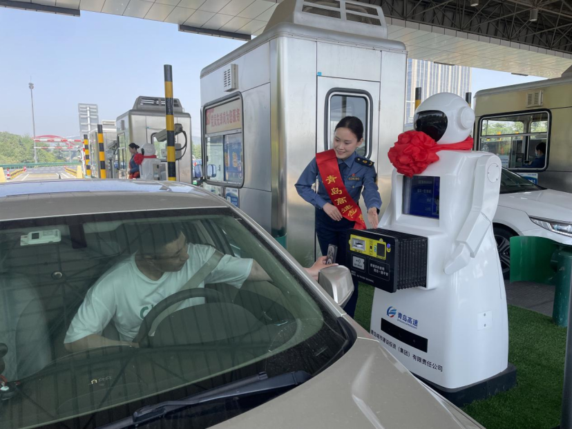 中國高速公路:萌萌噠!山東省首款“人形智能車道收費機器人”亮相青島