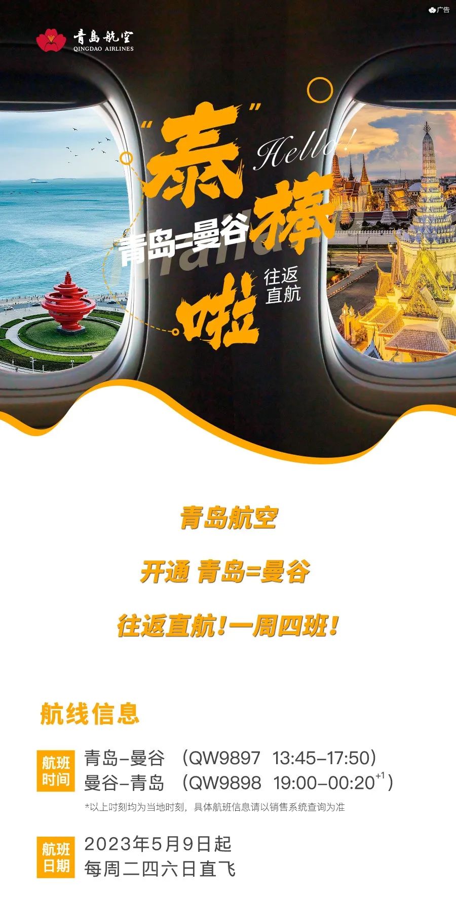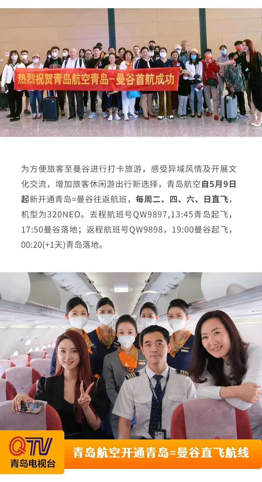 中國民航網(wǎng):青島航空新開青島—曼谷直飛航線!