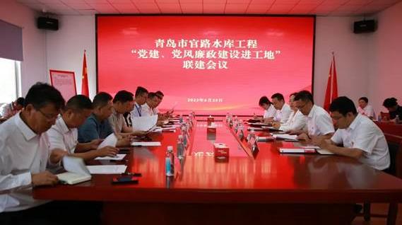 MORE +为护航青岛市官路水库重大工程建设,落实主题教育工作和《青岛市官路水库工程建设管理办法》关于党风廉政建设和“党建进工地”的部署要求,2023年6月25日下午,官路水库公司、围坝主体工程八家参建单位在项目现场指挥部驻地隆重举行党建、党风廉政建设进工地联建会议,城投集团党委委员、纪委书记冷严冰出席会议并作党风廉政建设集体谈话,官路水库公司和城市更新集团纪检负责人、城投集团纪委监察办有关同志参加。(图为会议现